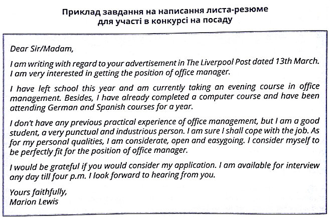 написання листа про роботу