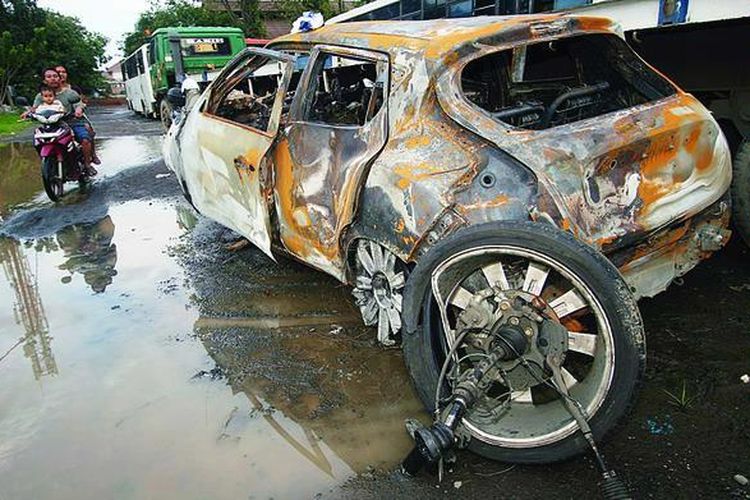 Saat diangkat dari Juke jenazahnya rontok. Mereka melaporkan Nissan Group terkait kasus terbakarnya mobil yang dikemudikan Olivia. Nissan Juke Foto.