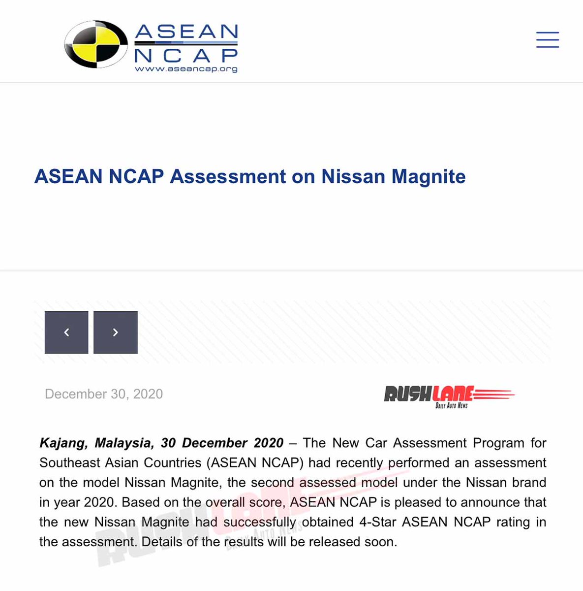 Details of the results will be released soon. Based on the overall score ASEAN NCAP is pleased to announce that the new Nissan Magnite had successfully obtained 4-Star ASEAN NCAP rating in the assessment. While replying to a tweet Nissan India said that the Magnite sold in India obtained 4-Star rating by the ASEAN NCAP.