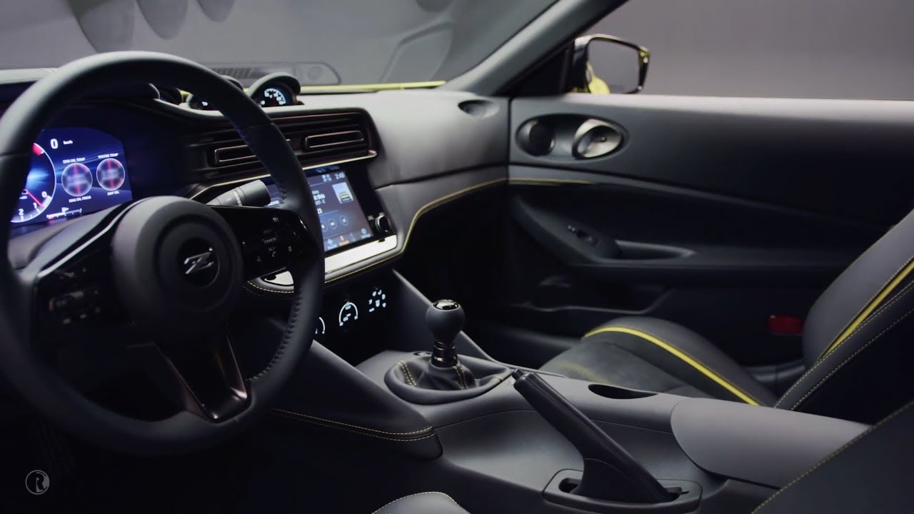The yellow seat accents look great though the yellow Z floor mats are a bit tacky. Fortunately its a good future that sticks to the Z formula of two seats swoopy styling and enough power to satisfy. On that last bit Nissans been coy about exactly what the Proto Z packs.